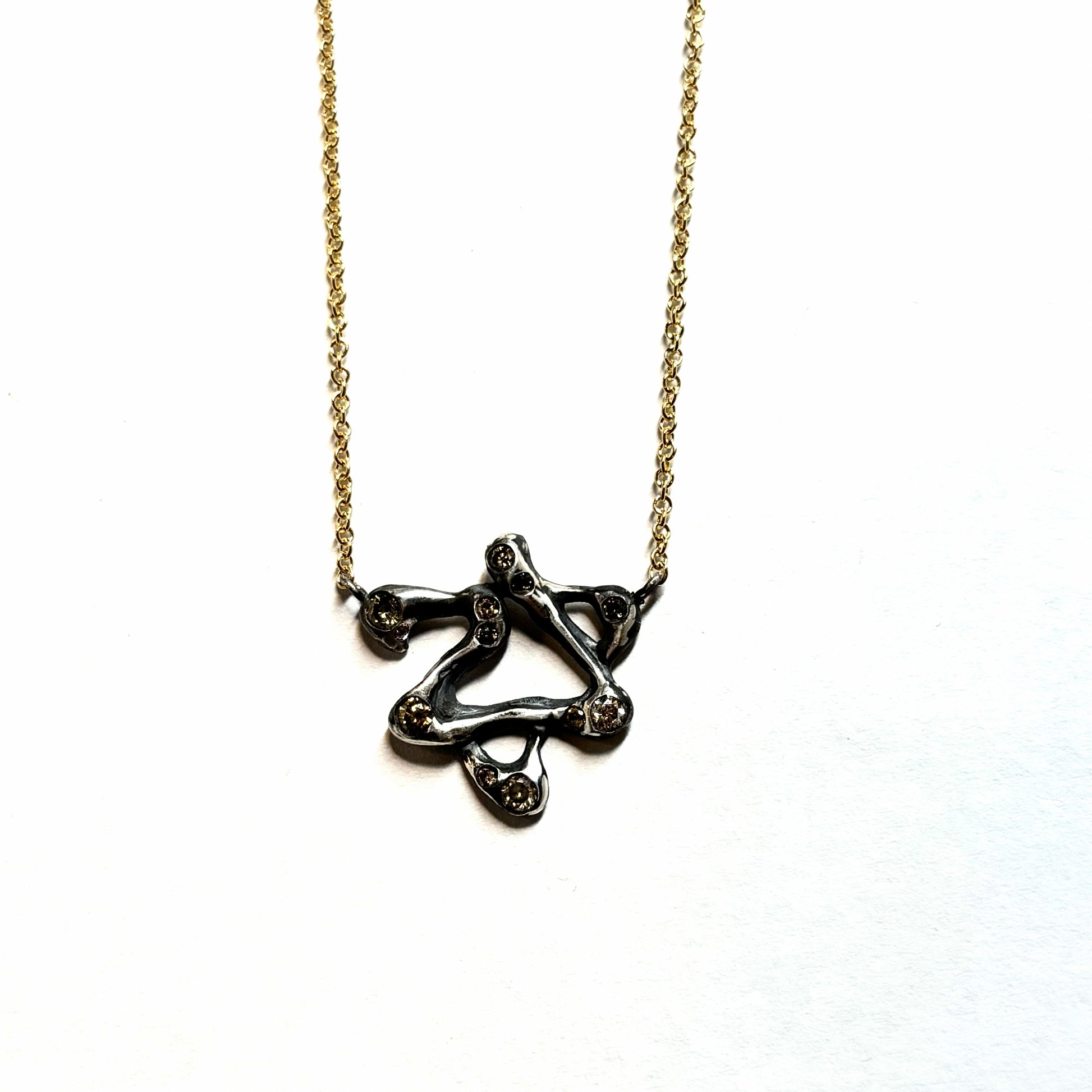 A part of my 2025 Judaica collection, the irregular and fluid shape of the silver Star of David charm with contrasting diamond accents is both a fine jewelry and strong identity statement. Can be used as pendant or bracelet. Also available in oxidized silver.