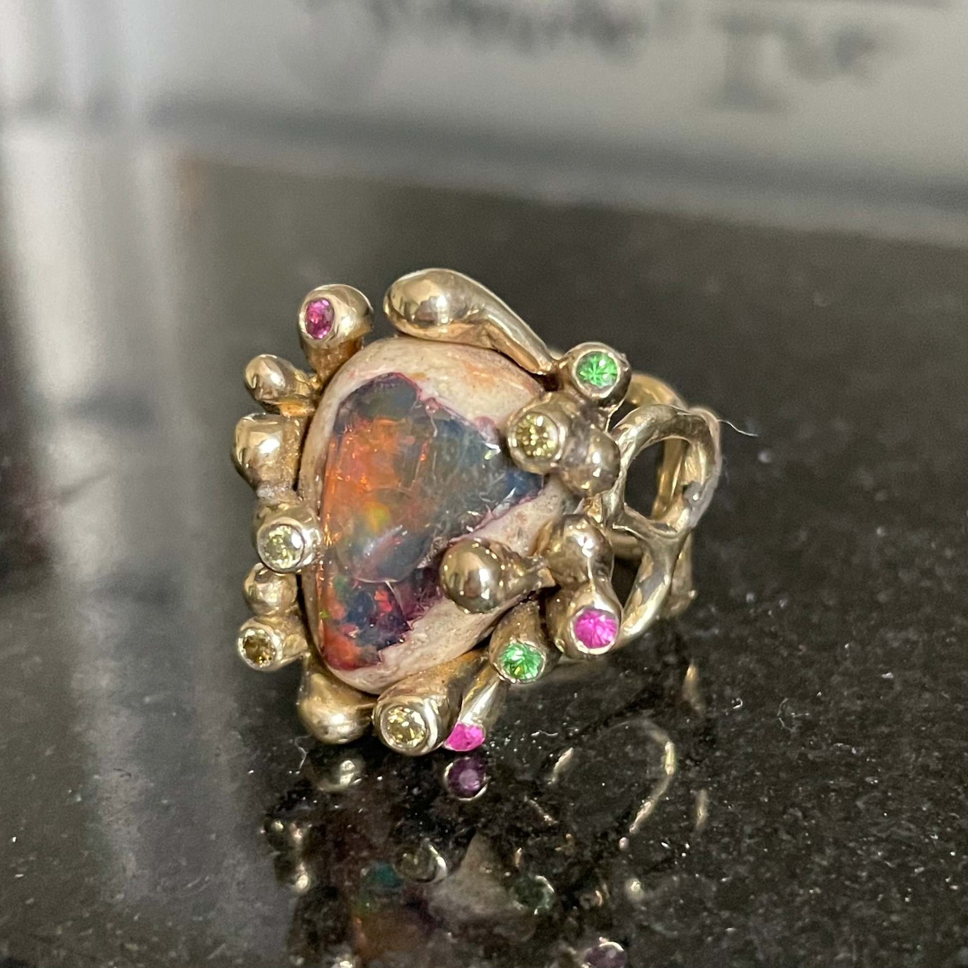 Mexican Galaxy Opal & Sapphire Silver Ring